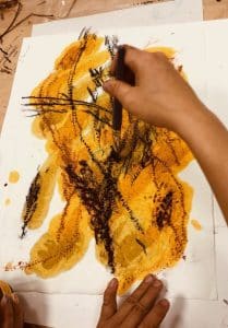 L’artiste plasticienne Patricia Ingenuo a invité les participantes et participants à créer à partir de leurs émotions et de leurs ressentis, au contact des œuvres de Mathurin Méheut.